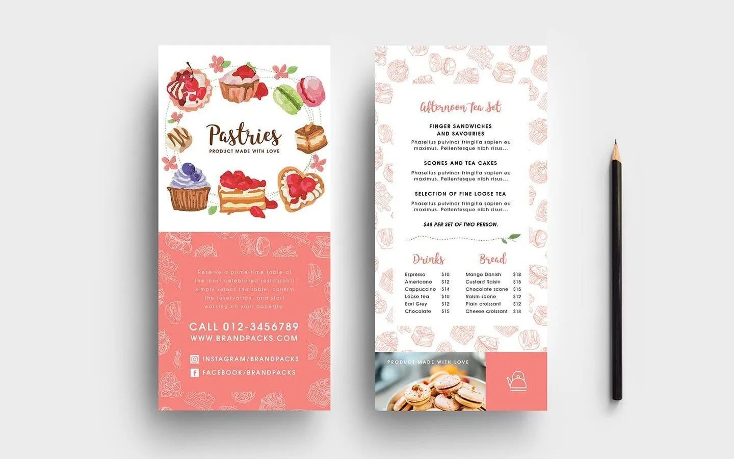 Add your contact information on one side and the details about your offers on the other side. These templates may seem tiny, but they can contain a significant amount of data. Utilize this template to promote various businesses such as cafes, bakeries, or any delis you want. Download these files and start your yummy work right now.