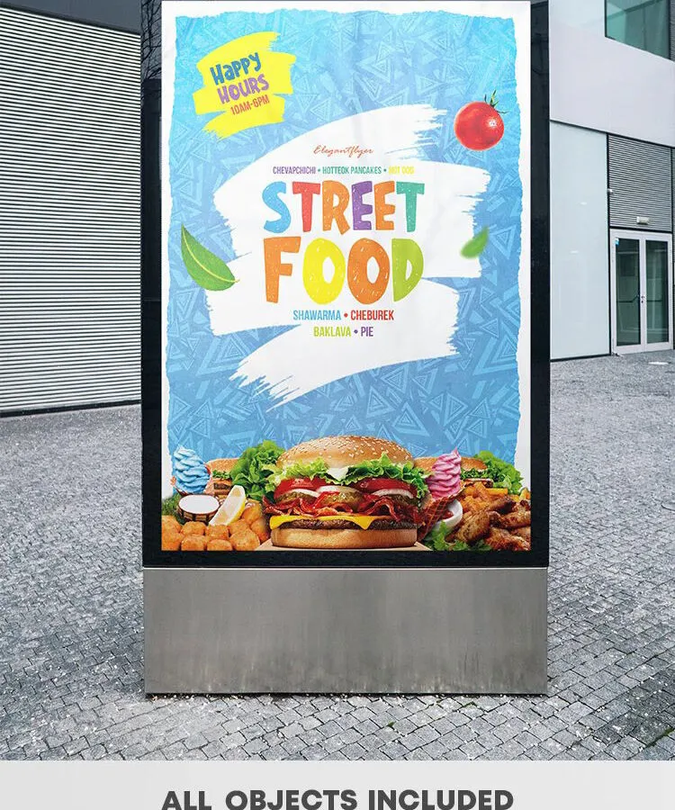 Stand out from the crowd and make the folks passing through the sidewalk feel drawn to your top-notch street food booth. It’s going to be easy as a piece of cake to do so with the help of this attractive poster template.