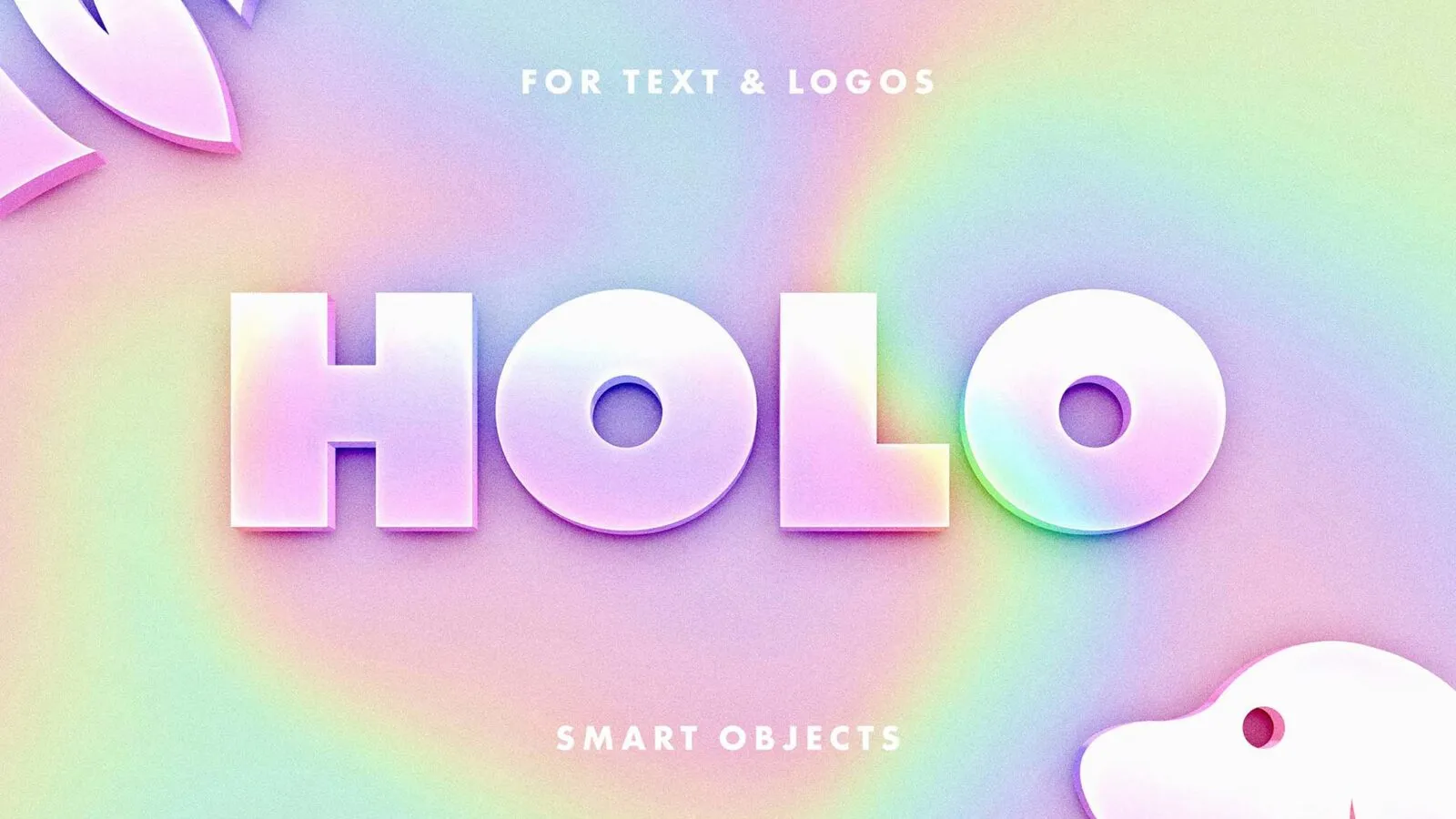 Explore a new dimension with the Bold Holographic Logo / Text Effect, where virtual reality meets captivating light reflections and intriguing illusions. This artistic use of color creates a dynamic and eye-catching appearance for any design.