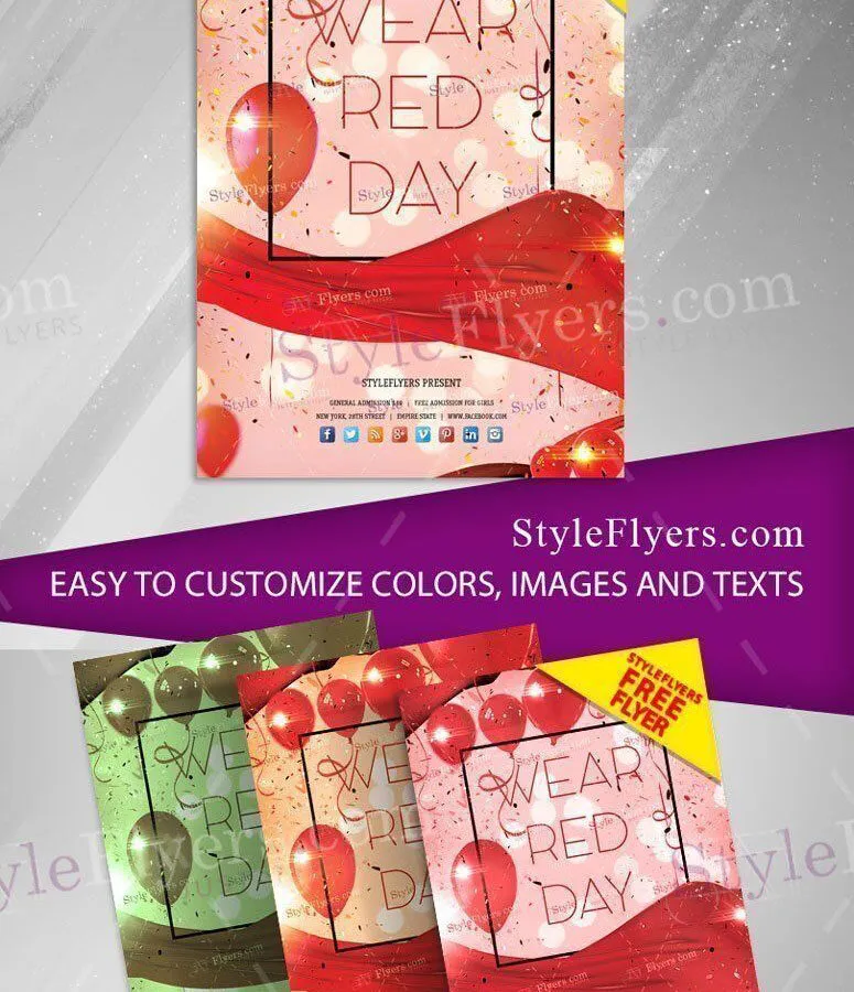 Need a hand designing a gorgeous to promote your wear red day event? Then you can’t miss this interesting design. While free of any sort of cost, this stunning wear-red day offers a brilliant design style that indicates the theme of the event with an all-over-red color palette.