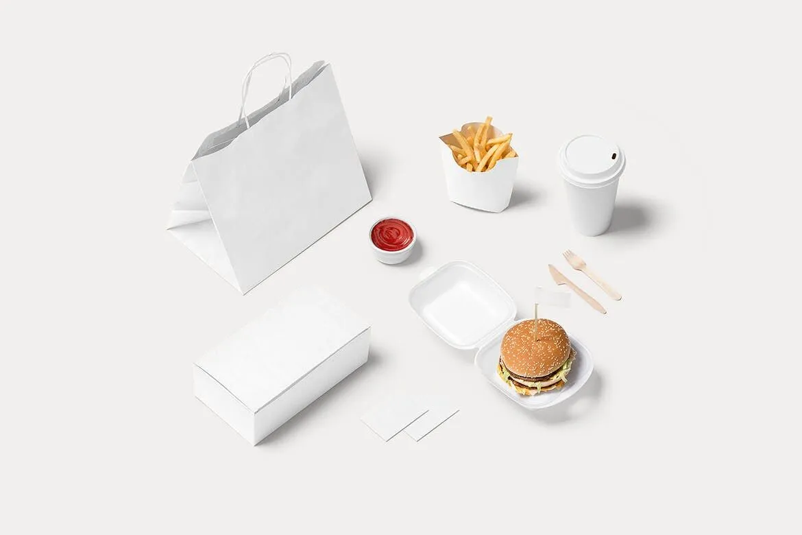 Here is catchy branding for restaurants or burger stores available for you. Thanks to the mockups, you can first test out all kinds of different variations and then decide on the clear winner. After all, you can quickly import your specific design, change the color of items to any tint you desire, append texts, and whatnot.