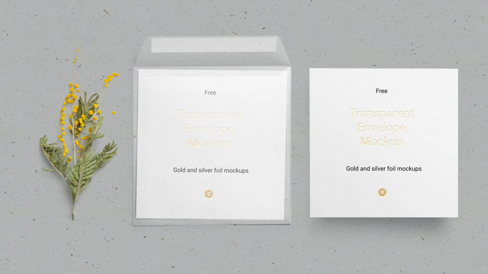 The more profoundly you examine these preview images, the more you apprehend their aesthetic aspects. The presence of these tiny flowers makes this mockup ultra distinctive among all the available competitors. It shows two square shape cards that are inside a transparent folder which makes it look more stylish.