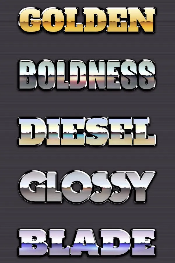 The Chrome Reflection Text Styles offer a polished and eye-catching effect for your text, shapes, or objects. With five different styles to choose from, these effects can be applied in less than two minutes, making them a quick and easy way to enhance your designs.