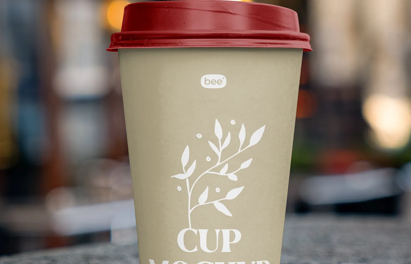 Close-up Sight of Paper Cup Mockup on Street