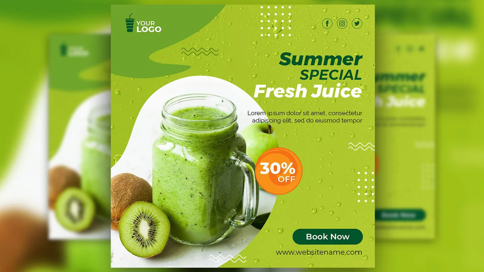For hot summer days, when your body needs to absorb nutrients soon, juice also lets you get a broader intake of minerals and vitamins. Here a fresh and cool juice and drink with the green color theme would be brilliant for promotion business purposes on social media and more.
