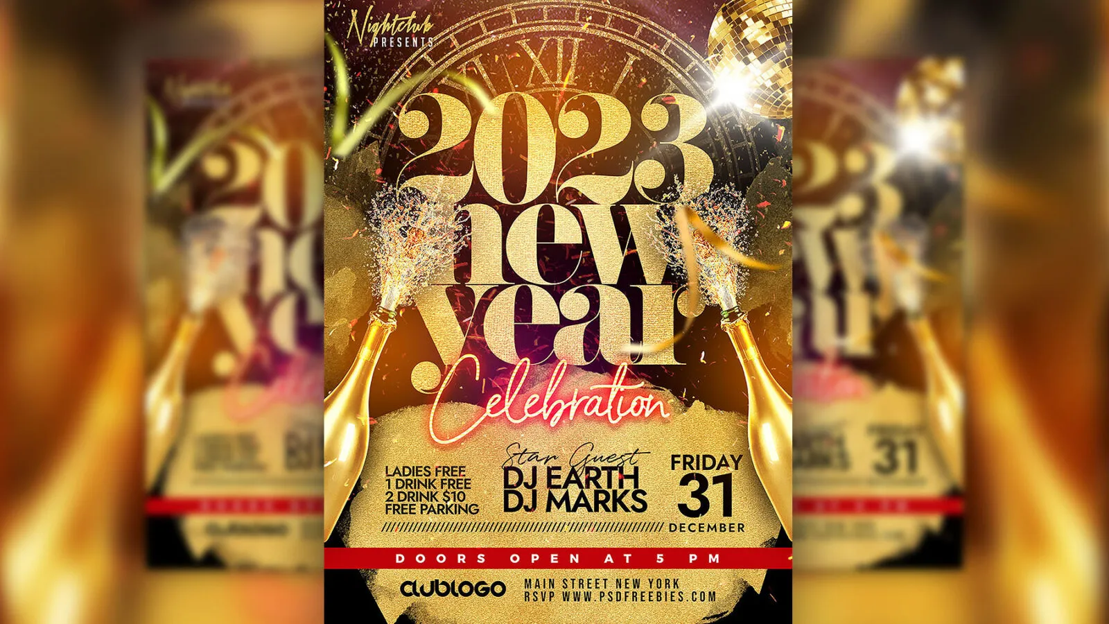 Cool Vivid New Year Club Party Flyer Template