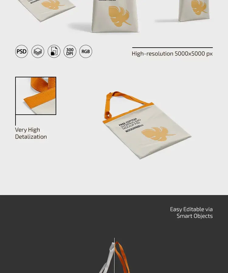 Cotton Shopping Bag Mockup in 3 Sights