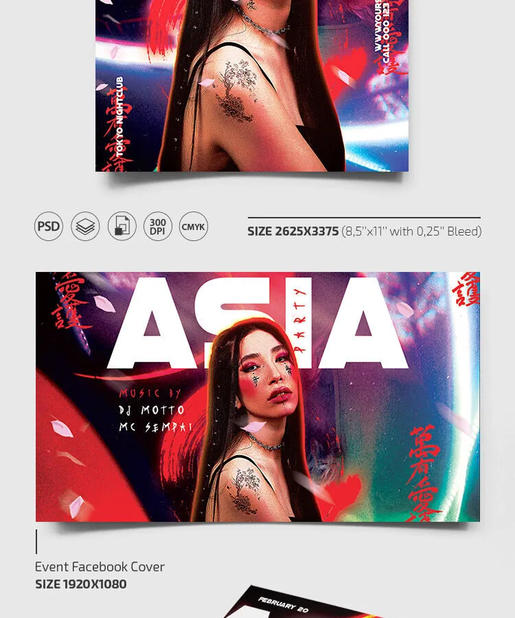 You can easily customize the flyer by adding the event date, website, and contact information. While the model image is not included, you have the flexibility to insert your own. Additionally, a Facebook event cover is provided to help you effectively promote your event online. Download the templates to create an impressive and engaging invitation.
