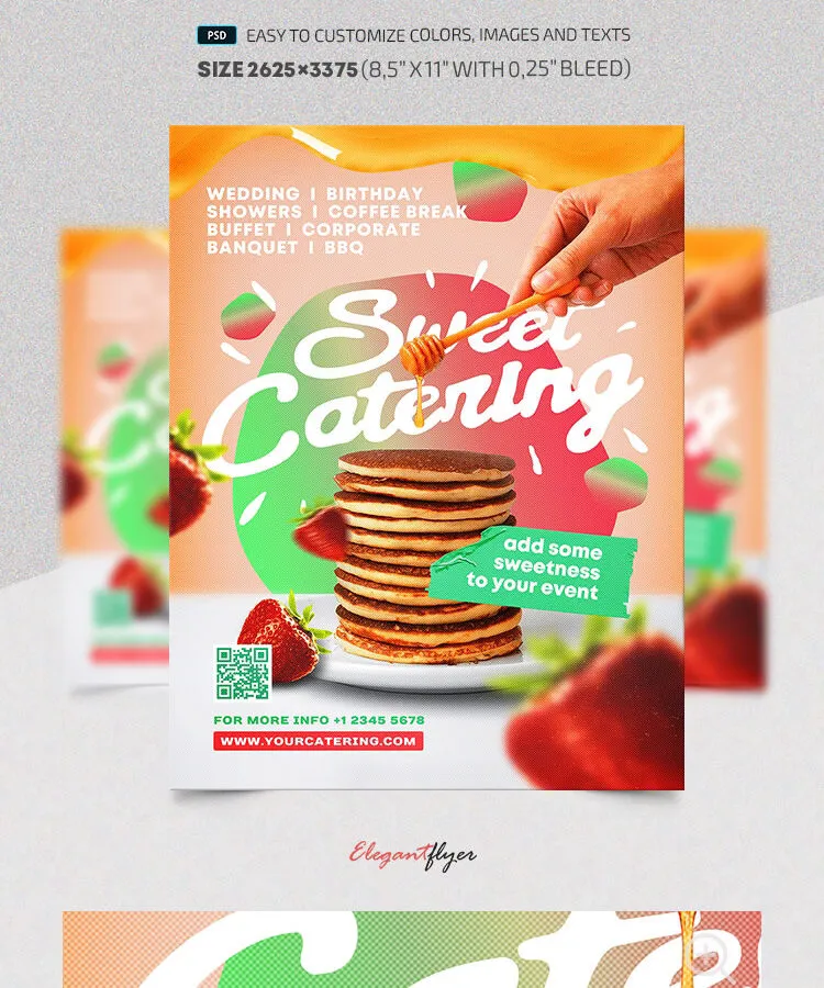Once again, let’s simplify your promotional designs to the point of sheer easiness. We’re talking just a couple of clicks in a minute instead of long hours of being hard at work. How impressive and helpful is that? Take this sweet catering flyer template, and it’ll be open to all kinds of customization due to the layers.