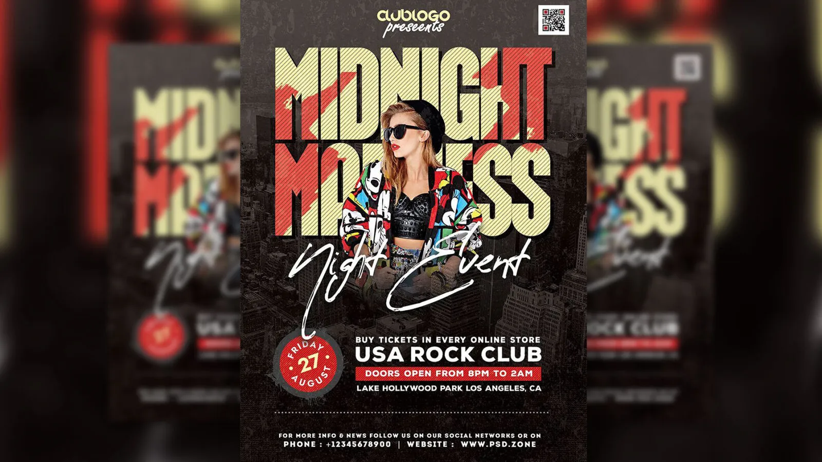 Are you in need of a cool template to announce your party? Today’s freebie might be what you have been looking for. This product is a dark modern suitable for any kind of club, music, or dance party. The flyer is in a dark color, and you can see the city view in the background.