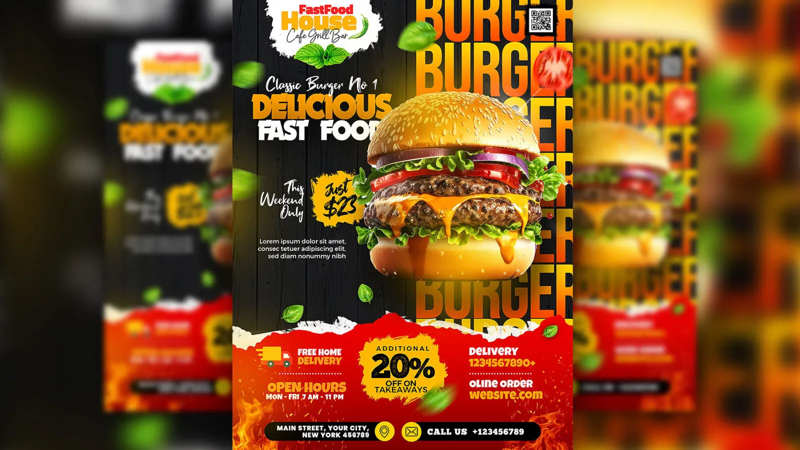 If you want to market your name, introduce your special food or the like, this delicious design tool can be a nice choice. This A4 fast food with its realistic and delightful mood can represent your brand well.