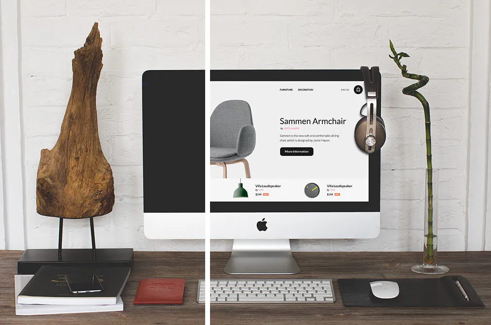 There is no better way to display your specific design projects more interesting and appealing with this desktop scene mockup. Here is an excellent mockup featuring a screen of a MacBook Pro, a decorative plant, keyboard, mouse, and so on.