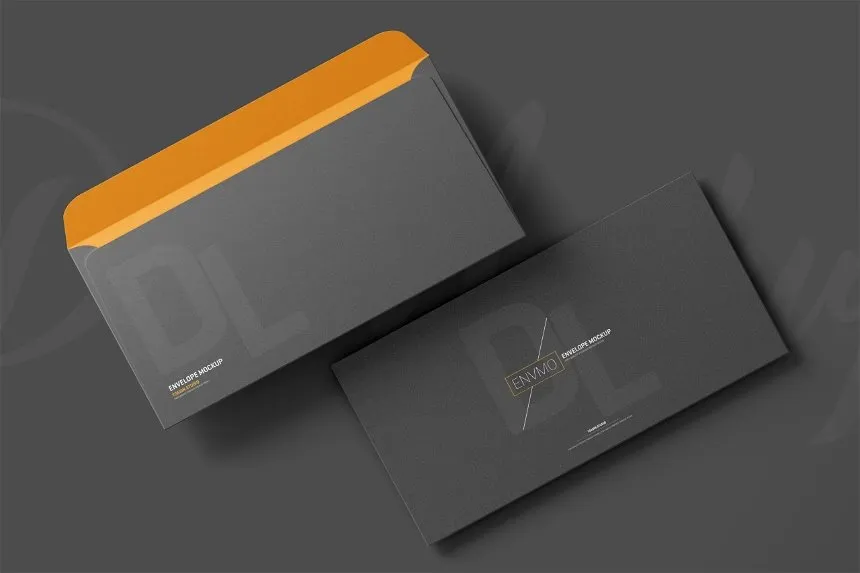 The DL Envelope Mockup in 4 Different Showcases offers a practical way to enhance your branding with its realistic design. This mockup includes four unique shots, each presenting a dark and elegant look that can make your promotional materials stand out.