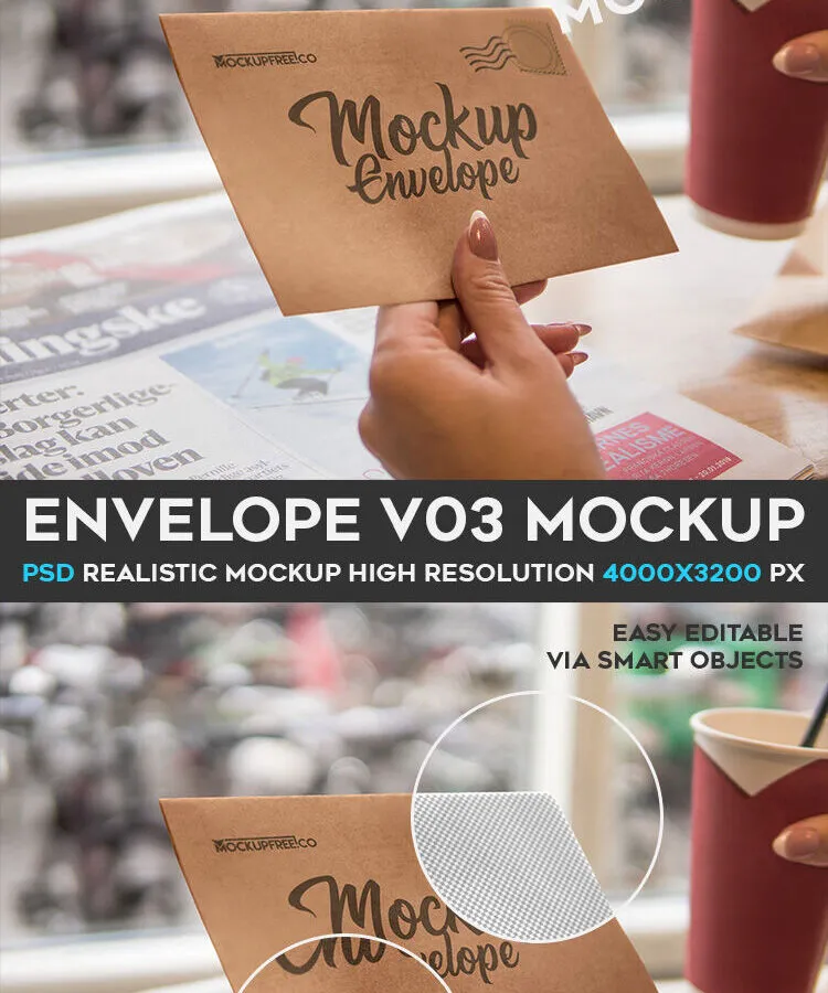 The Envelope Mockup Featuring Female Hand Sitting at the Table allows you to showcase your design in a realistic setting. This mockup captures the moment of sitting at a table, enjoying a drink, and discovering a letter. It helps convey the feeling and context of your design, making it more impactful for viewers.