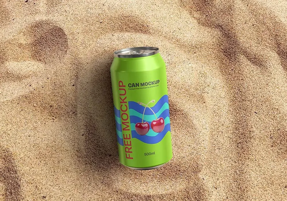 The Facing View of Beverage Aluminum Soda Can Mockup offers a realistic design that can enhance your promotional materials. Featuring a clear front view against a sandy background, this mockup is ideal for showcasing your branding in a memorable way.