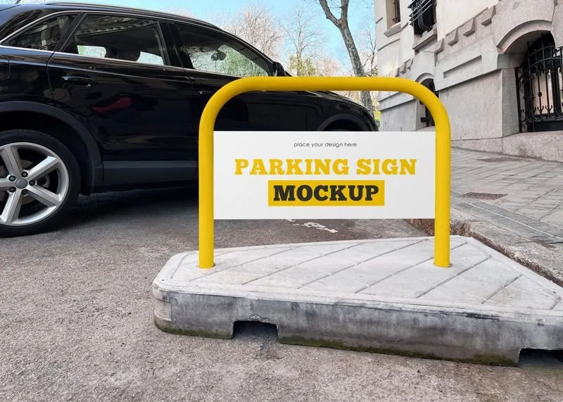 Facing View of Parking Sign Mockup