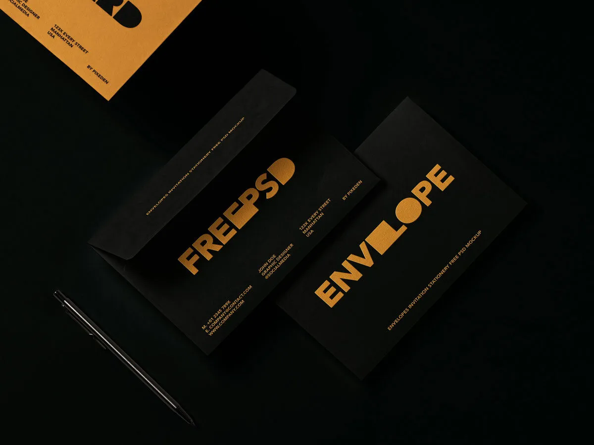 The Facing View of Stationery Mockup with Envelope offers a sophisticated layout for showcasing your designs. This free and high-quality mockup features a dark, visually appealing background that helps your artwork stand out. With just a few simple adjustments, you can create a professional presentation that highlights your design skills.