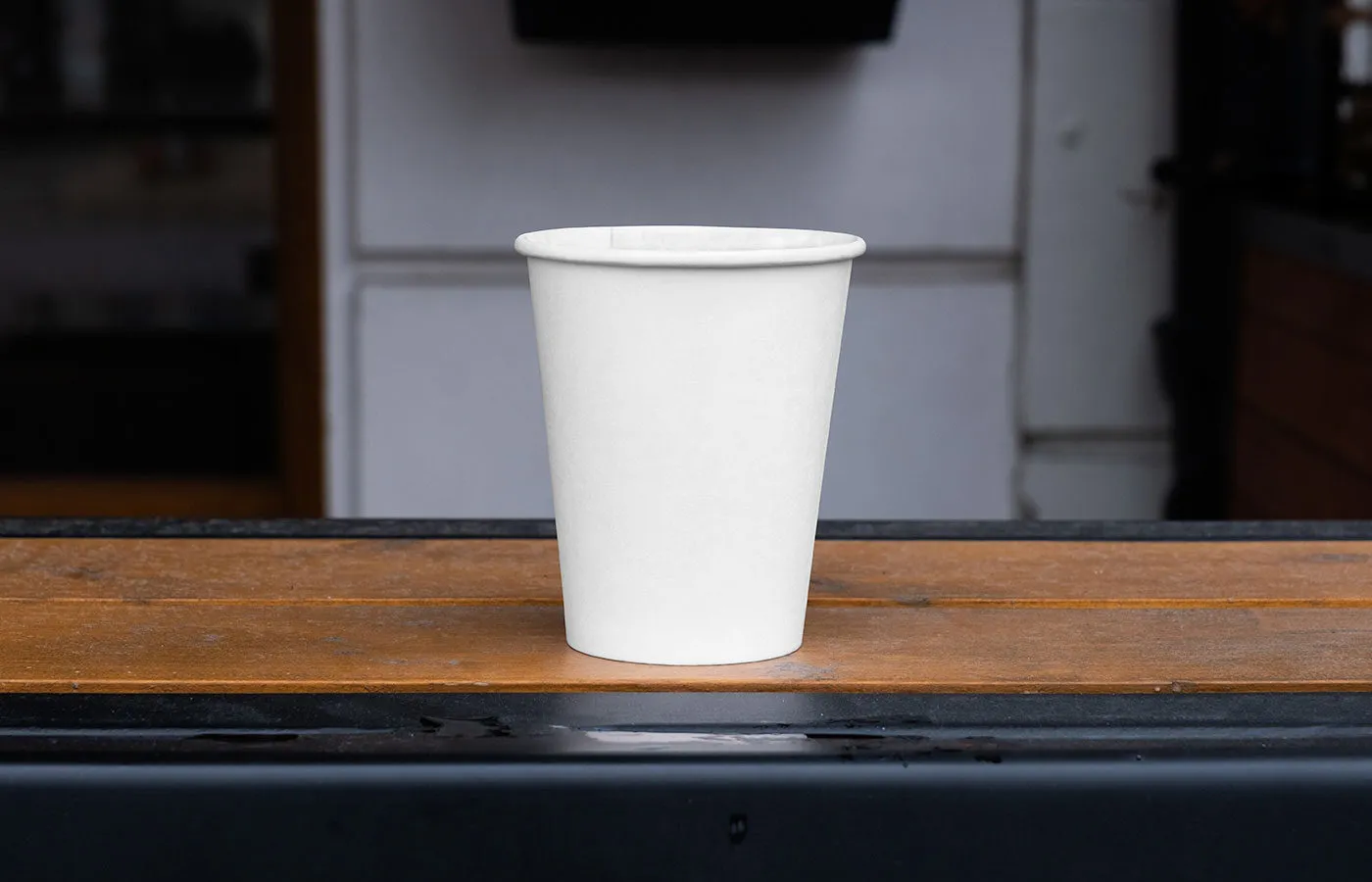 Facing Vision of Paper Cup Mockup on Railing
