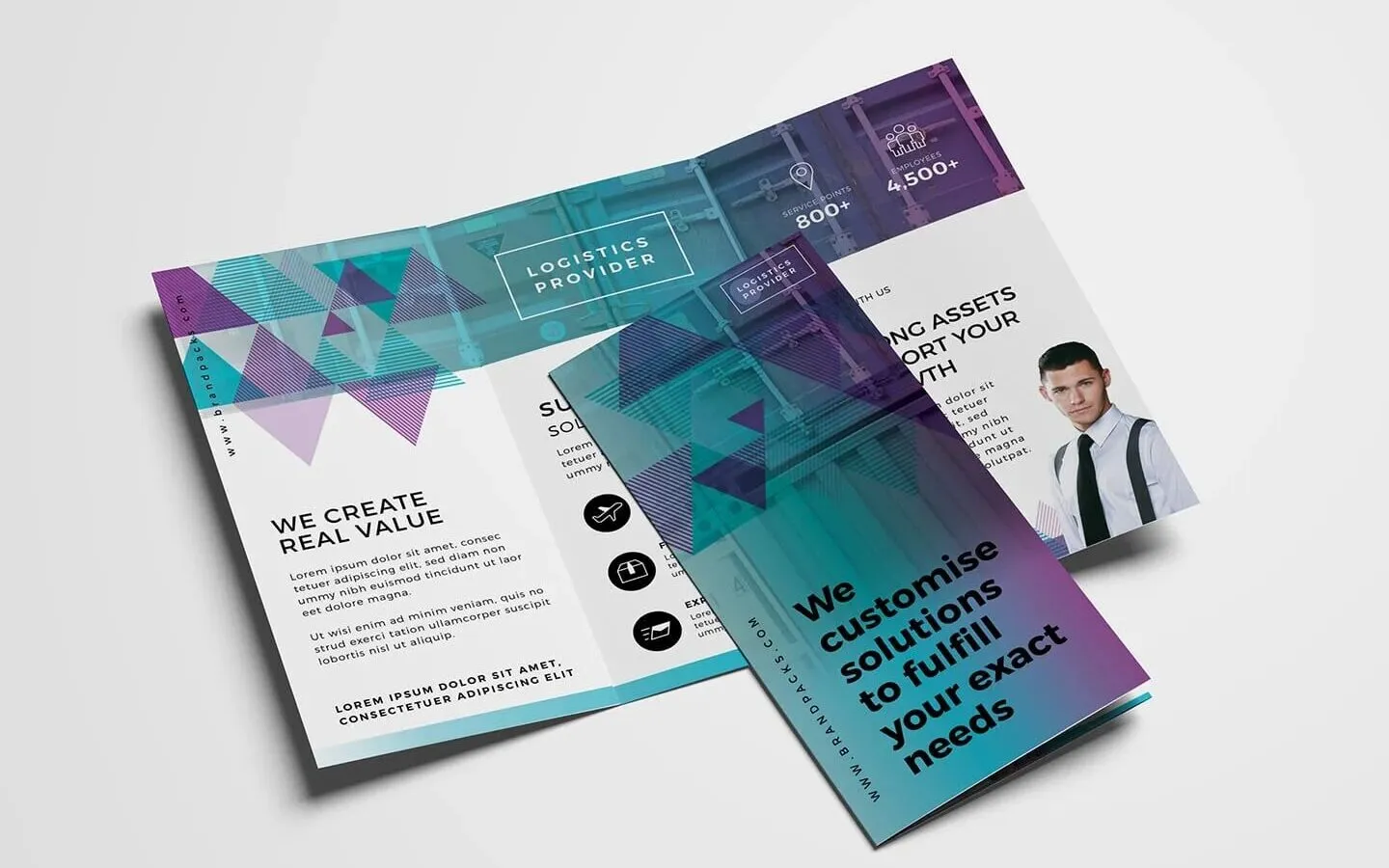 Can I interest you in a tri-fold brochure with such a stunning layout that allows you to share both image and text information with the least effort? There’s a clear area above the pages with background overlays where you can replace your own logo.