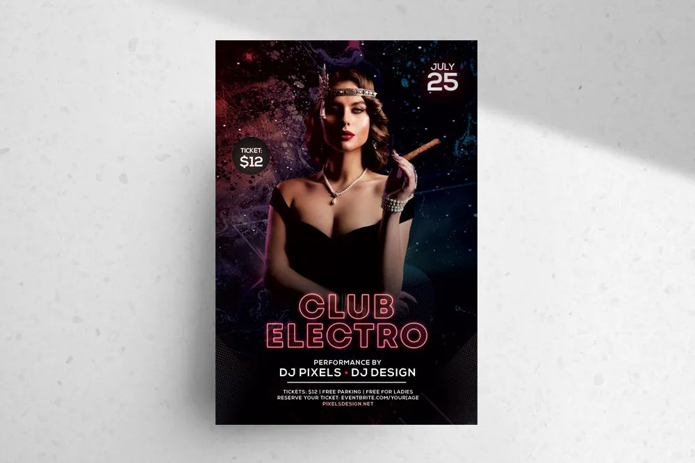 The Flyer Template Featuring Electro Night Club offers a visually striking design that captures attention. Its bold and modern layout makes it easy to promote your event and attract club-goers. With its eye-catching appeal, this flyer template can help create a strong impression of your club’s atmosphere.