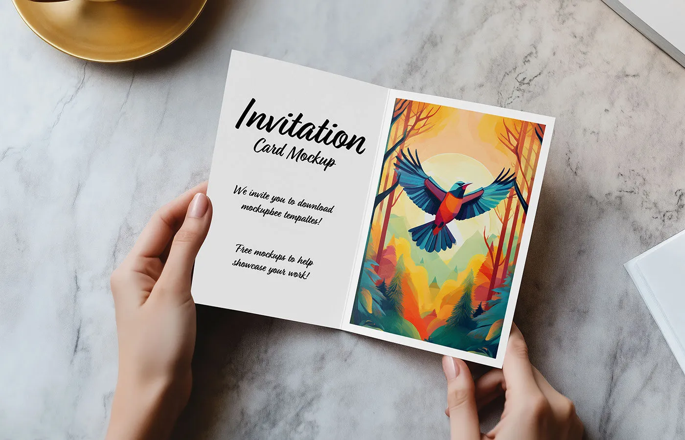 Show off your invitation and stationery designs with grace using this free folded invitation card mockup, a clean, high‑resolution PSD template that captures a folded card in photorealistic detail. The soft lighting, realistic paper texture, and subtle shadowing add depth and elegance, making your design feel tangible and ready for print.