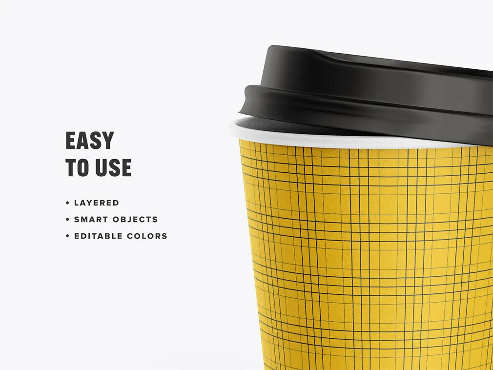 The files are layered to make customization straightforward. You can individually adjust the color of each cup and also modify the background and lid colors. Choose from the four different scenes to find the best fit for your project, then insert your graphics to achieve polished results.