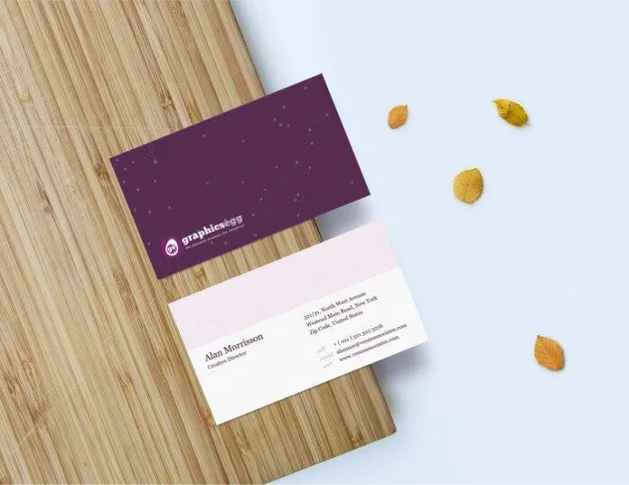 The Front and Back Business Card Mockup offers a stylish way to showcase your business brand. Set against a warm wooden desk with a few leaves in the background, this mockup creates a professional and inviting atmosphere that draws attention to your design. It provides a clear view of both the front and back of the cards, allowing you to present different patterns or information on each side.