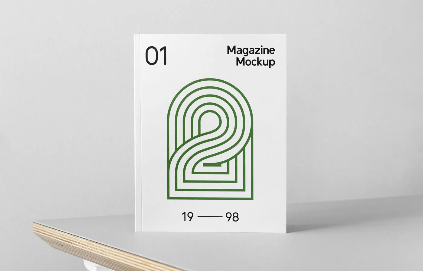 This exquisite mockup comes with a book standing right-up on the edge of a wooden table corner forming a natural shadow on the surface. The white color of the table and the opaque glass top along with the clean wall at the back create an explicitly cozy angle for your design, making it easier to catch viewers’ eyes and also gain their trust.