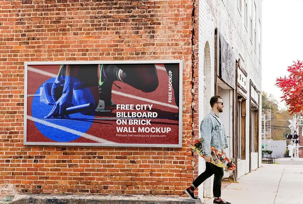 leave a big impact on passersby with a lifelike design of a city billboard like what is presented in this freebie. With a realistic urban scene, this city that is placed on a brick wall will showcase your creative advertising with a capturing mood.