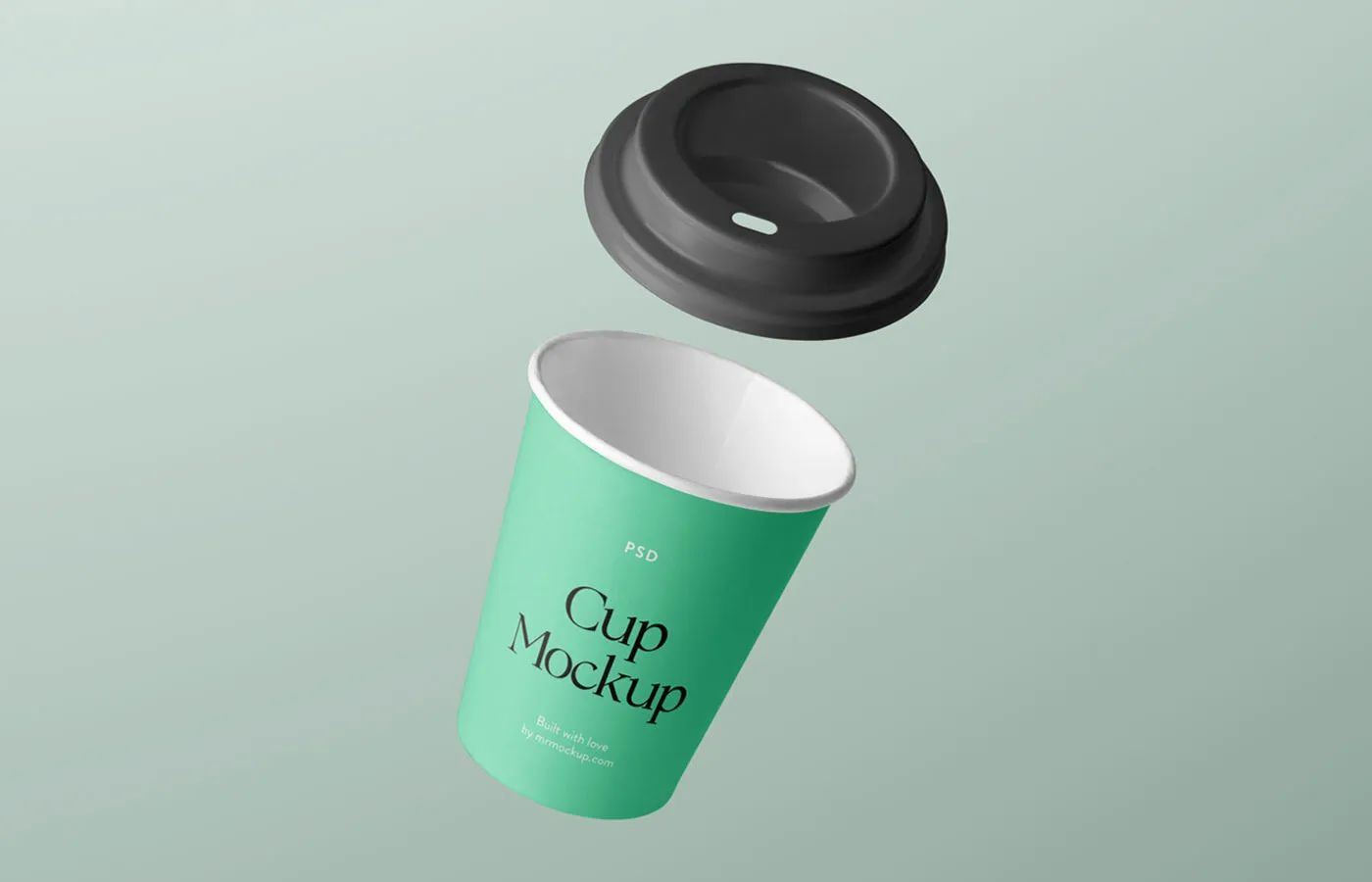 Featuring a front view of a coffee cup and its lid, this mockup allows you to showcase your design ideas in a striking manner. Experiment with this mockup to see how it can elevate your presentation and make your design truly captivating.