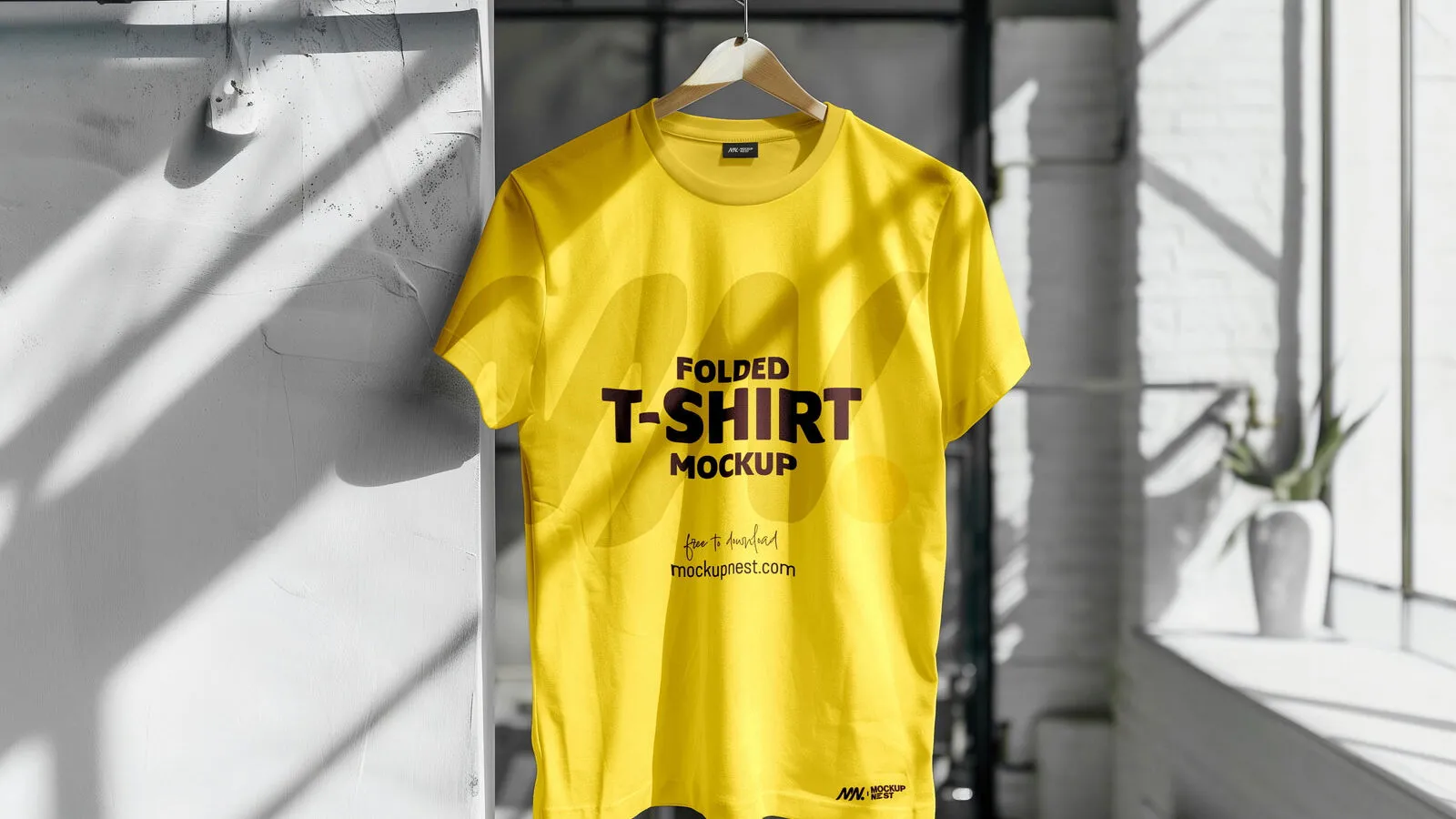 The Front Sight of Indoor Light Hanging T-Shirt Mockup offers a realistic and engaging way to display your latest T-shirt design. With its detailed features and smooth shadows, it creates a striking visual effect that enhances the overall presentation of your design.