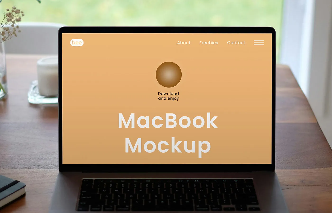 Front Sight of MacBook Mockup on Table