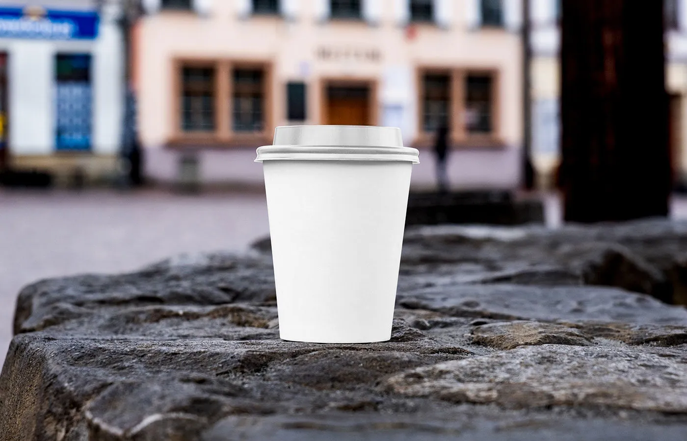 Front Sight of Paper Cup Mockup on Stone Wall