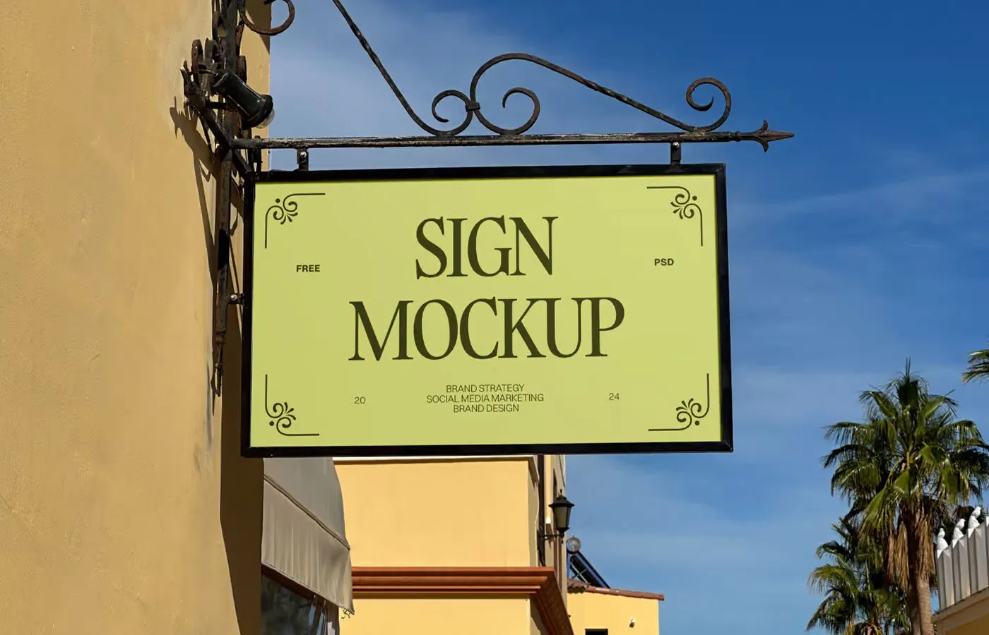 The Front Sight of Shop Sign Mockup provides a realistic and visually appealing way to showcase your branding. Set in a natural sunny location, this mockup is designed to draw attention effectively.