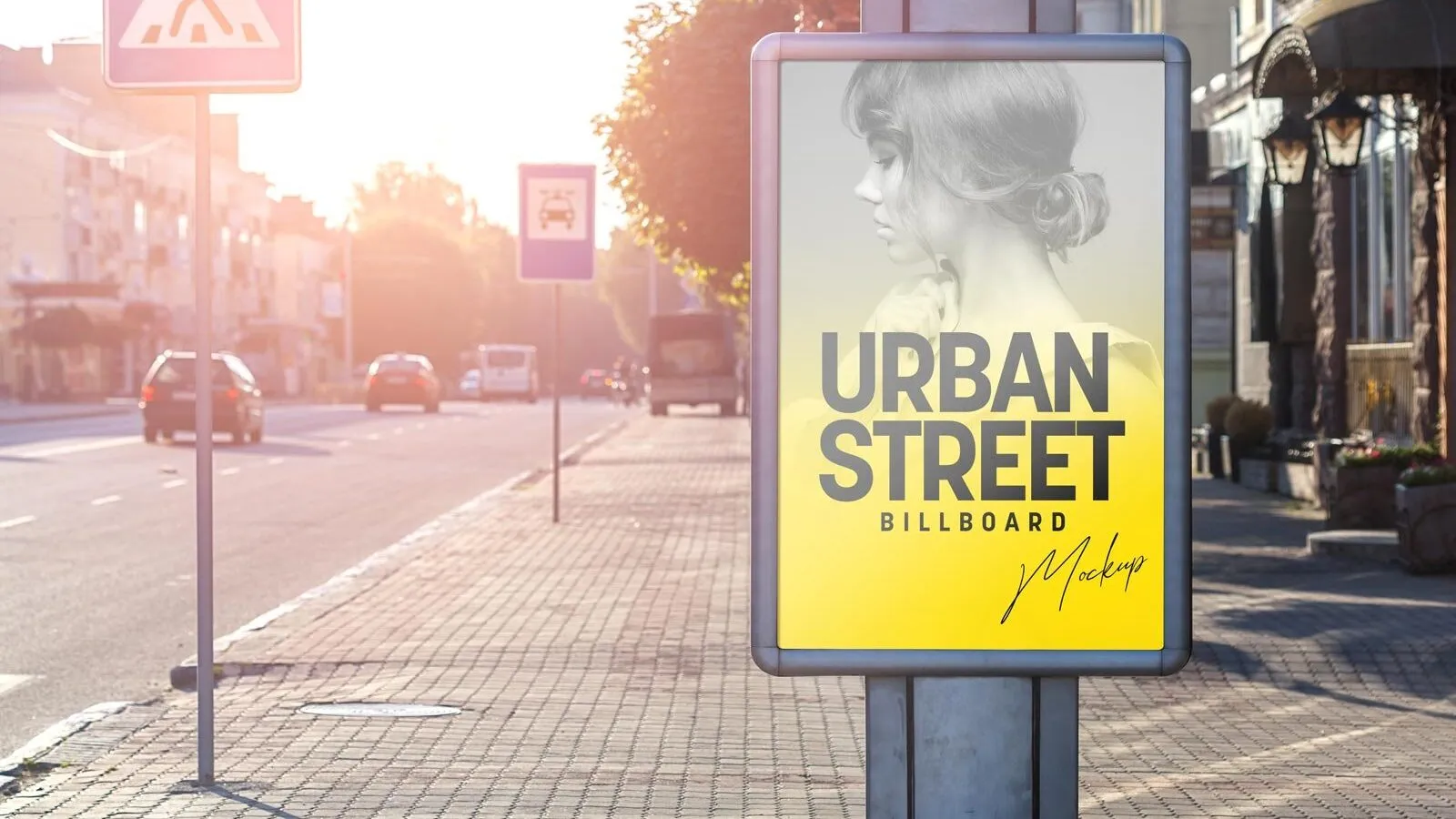 If you expect the ad you design to introduce your product to many clients, using a street billboard with an impressive appearance can be a good choice, which is well illustrated by this mockup. This product has a lifelike presentation of an urban standing street billboard with a captivating mood.