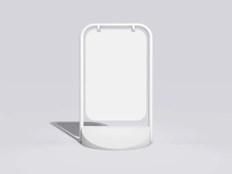 Create eye-catching advertisements for pavement signs in no time with this gorgeous and wow your clients. It includes a vertical signboard with curved corners in the front view, where you can replace your graphics and see how it turns out in real life. The shadow overlay makes the preview image even more realistic than it already is.