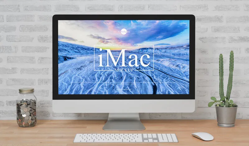 Have a clean and perfect UI presentation with this . It shows the iMac on a wooden table along with a cactus and a jar of coins. It’s quite easy to use and gives your projects a boost both in quality and speed.