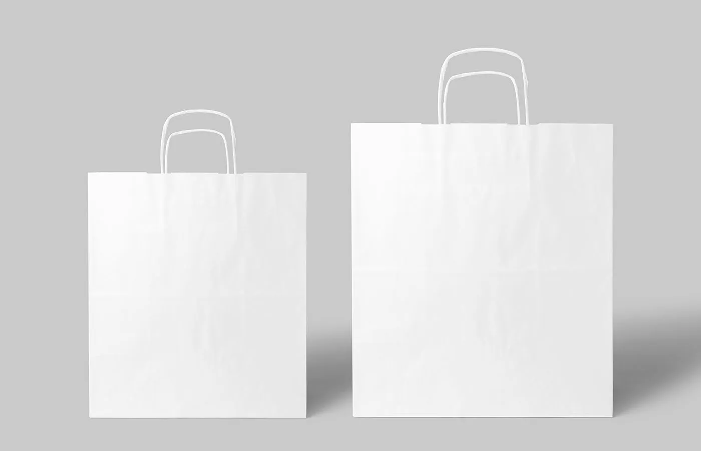 Showcase your boutique’s brand with a clean and contemporary design using this Front View of 2 Big Paper Bag Mockup. This tool features two paper bag mockups set in a straightforward and customizable setting, allowing you to present your designs effectively.