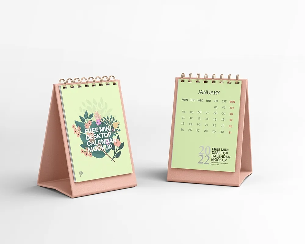 If you’ve been looking for a for your design, then today is your lucky day. Today’s product allows you to see your design alongside its twin! This product is the front view of two mini desktop calendars mockup with a simple background that can be changed to match your design. The calendars are detailed to make your work more realistic.