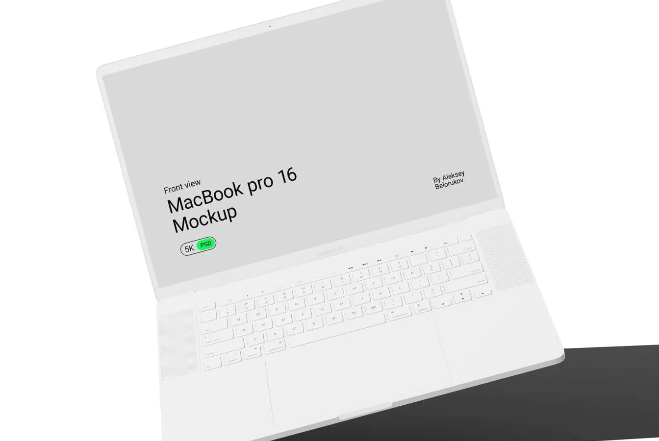 If you are looking for a free to showcase your design, we might have what you need. This product is the front view of a floating clay MacBook pro 16 mockup. You can put your app, game, picture, or web design on the screen and impress your client. The laptop is on a bare workstation.