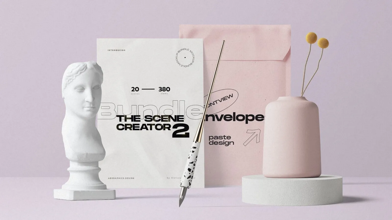 This Front View of Envelope and Papers Mockup with Bust offers a sophisticated way to showcase your design. The mockup features a minimalistic design that highlights your work with elegance. The inclusion of a vase and bust in a well-lit setting adds a touch of refinement that can enhance any topic you choose to illustrate.