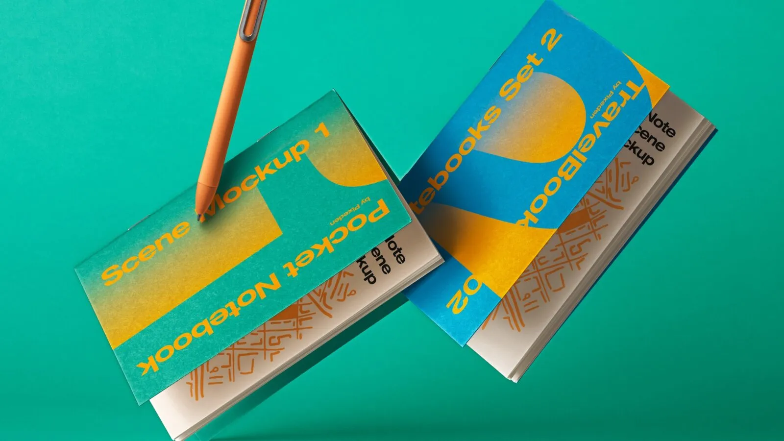 This time, a booming product that can bring a sense of dynamic, passion, and joy to the audience and designers. Well, a set of with a pen that is amazingly floating or, in truth, flying! This is a spectacular set of PSD notebook mockups for a surprising word expression.