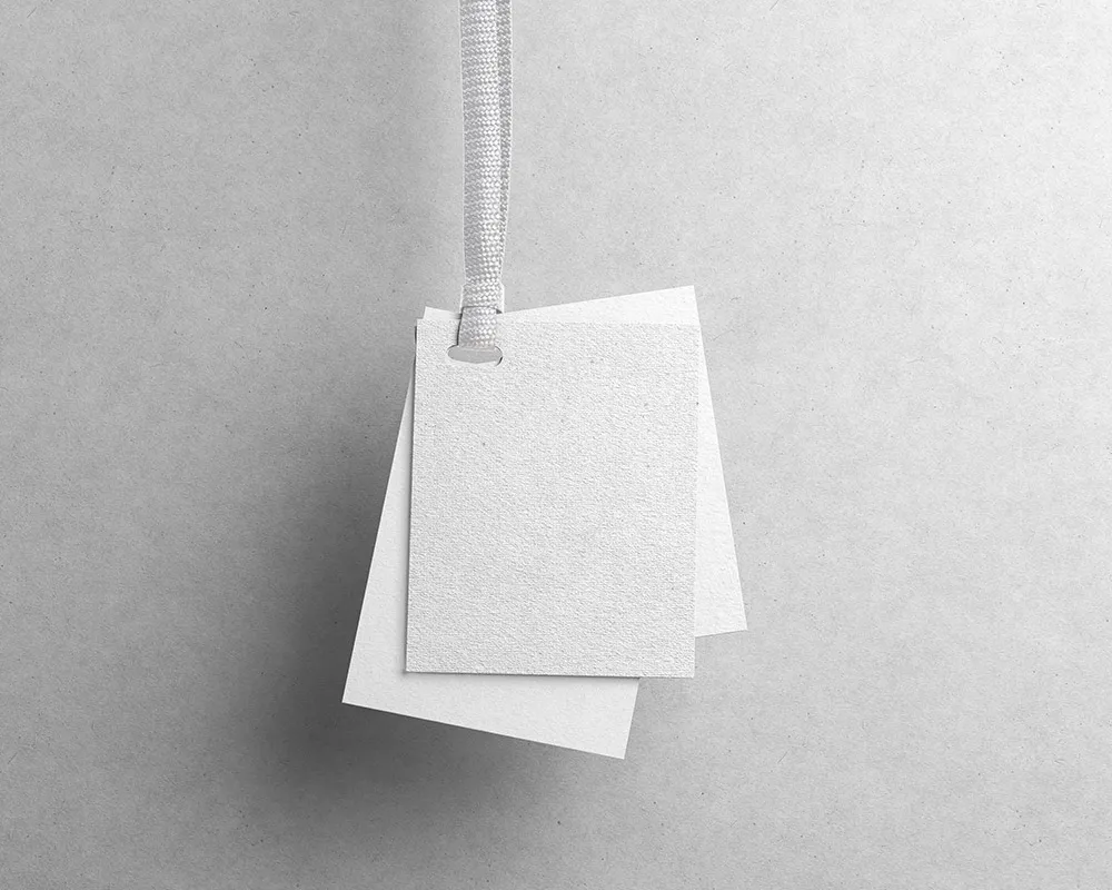 Hanging tags are hard to design since there are so many brands and almost every style is unavailable, but a mockup will improve your creativity. In this product, you can see the front view of the dark hanging . You can put your design on this realistic three-piece mockup and see how it’ll turn out before getting it printed. The background is changeable as well.