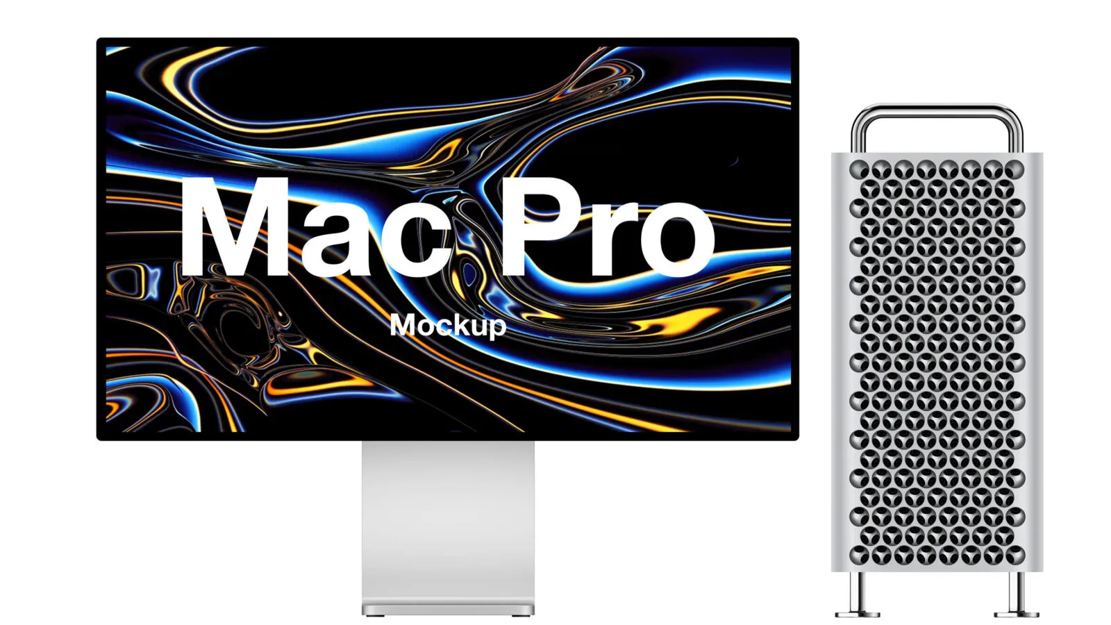 Front View of Mac Pro next to its Case Mockup