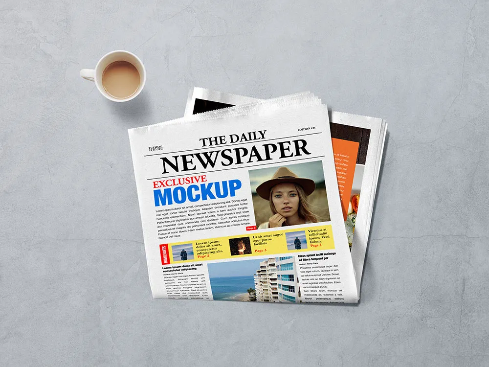 Editing this mockup is straightforward. You can easily add your design or text to the smart layers and apply it to the front view of the newspaper. This tool is ideal for enhancing your branding efforts.