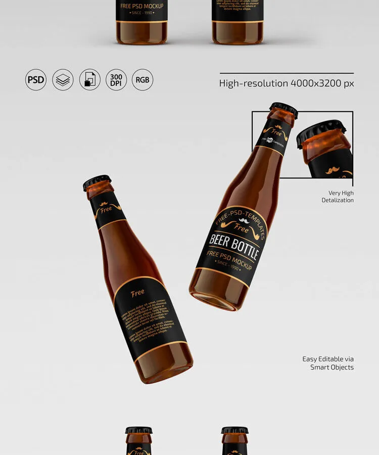 If you are looking for a that both sides of it are customizable, today’s product might bring joy to your heart! This freebie is the front view of two beer bottle mockups. In the first one, you can see the front and back of two beer bottles on a flat surface, and in the second one, you can see the front and back of two floating beer bottles.