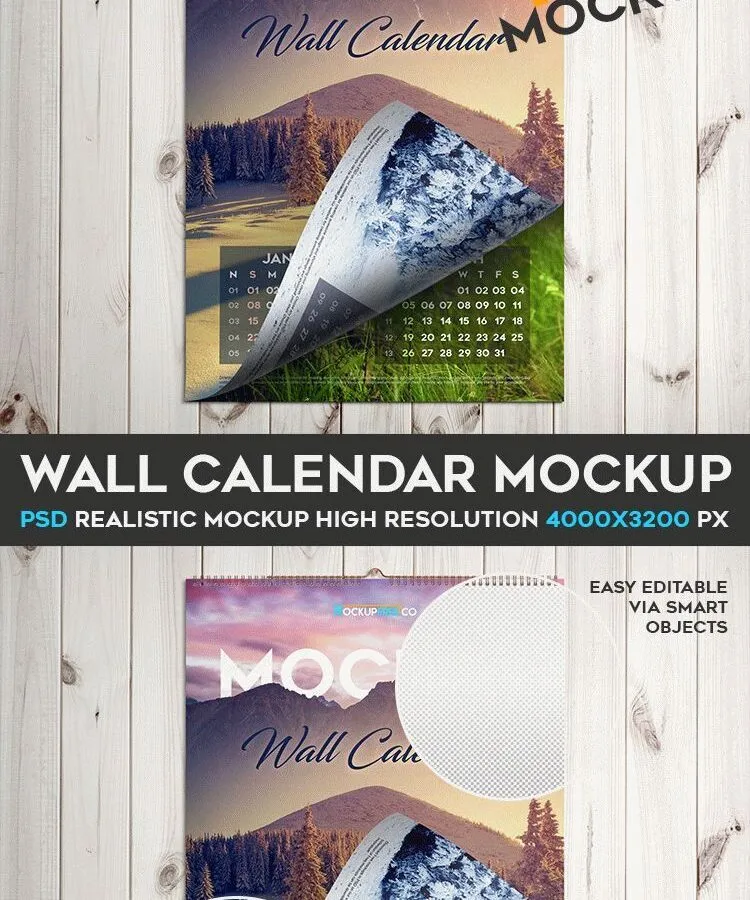 Want to make plans for the next weeks and months using your own personalized wall calendar? This awesome wall will be of great help if that’s the case. It features a vertical wall calendar hung on a wooden wall. As soon as you’re finished with your exciting calendar design, place your graphics in the smart layers, and it will appear on this mockup.