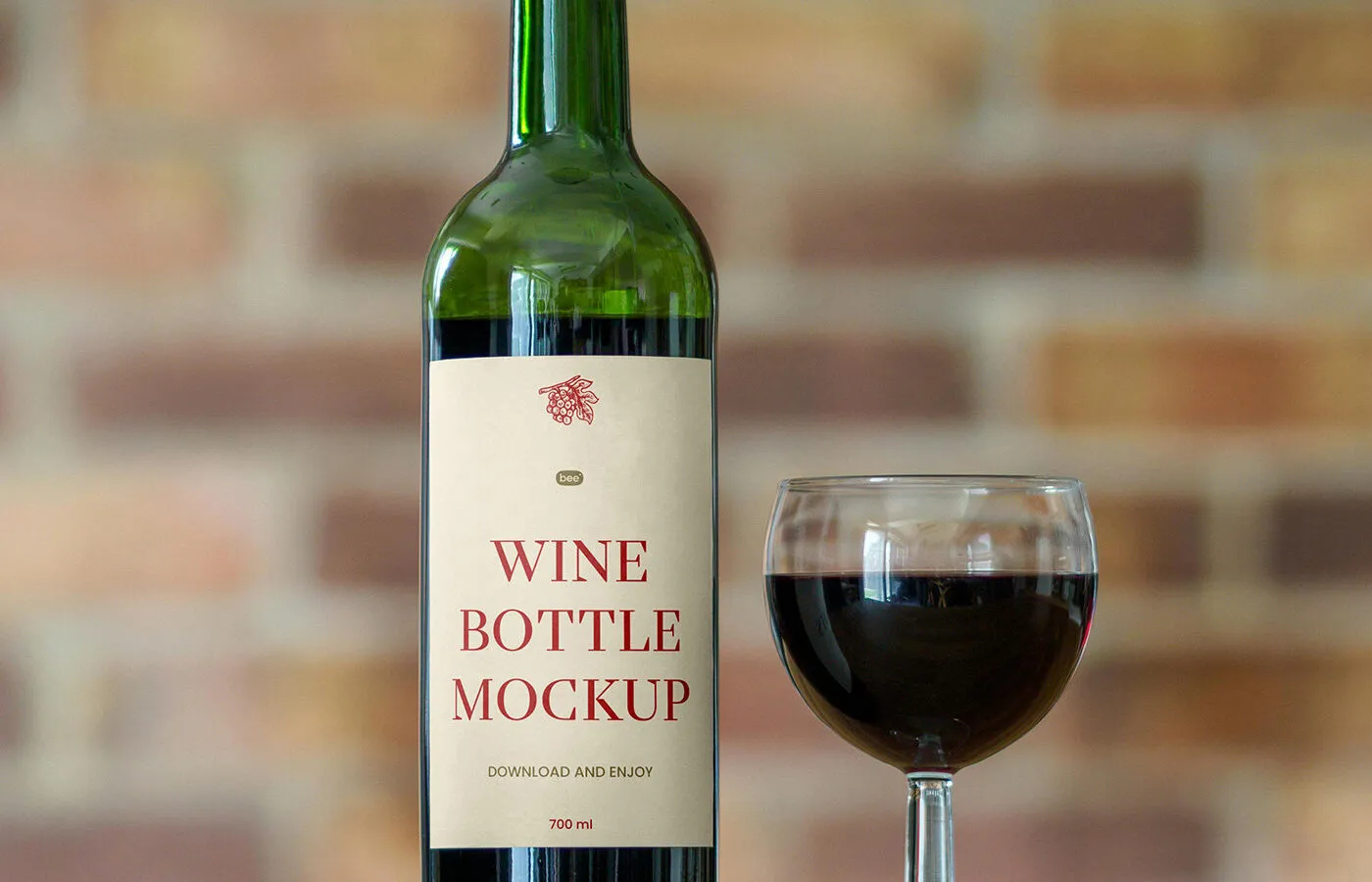 The Front View Wine Bottle Label Mockup with Glass offers a convenient way to showcase your wine label designs. This mockup allows you to easily customize the label with your own branding, providing a realistic presentation of how your design will look on an actual bottle. Simply download the PSD file, insert your design, and adjust the scene to your liking.