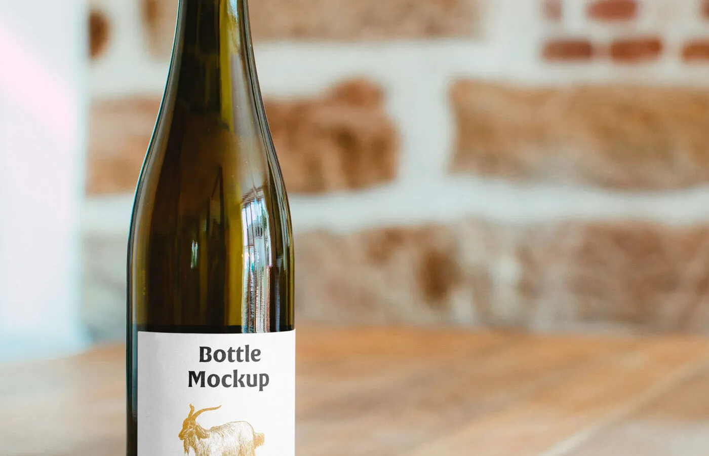 The Front View Wine Bottle on Table Mockup offers a realistic way to display your branding designs. Positioned on a wooden table, this mockup allows you to easily add your design or texture using the smart object layer. This setup provides a professional look for your project without any complex steps.