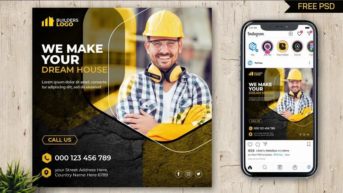Let everyone know about this reliable home builder and construction template to boost your social media or Instagram pages! Get your hands on this to have a long line of customers signing up with you and promote your business through this stylish template. It brings attention to any plan like real estate, engineers, and freelancer services.